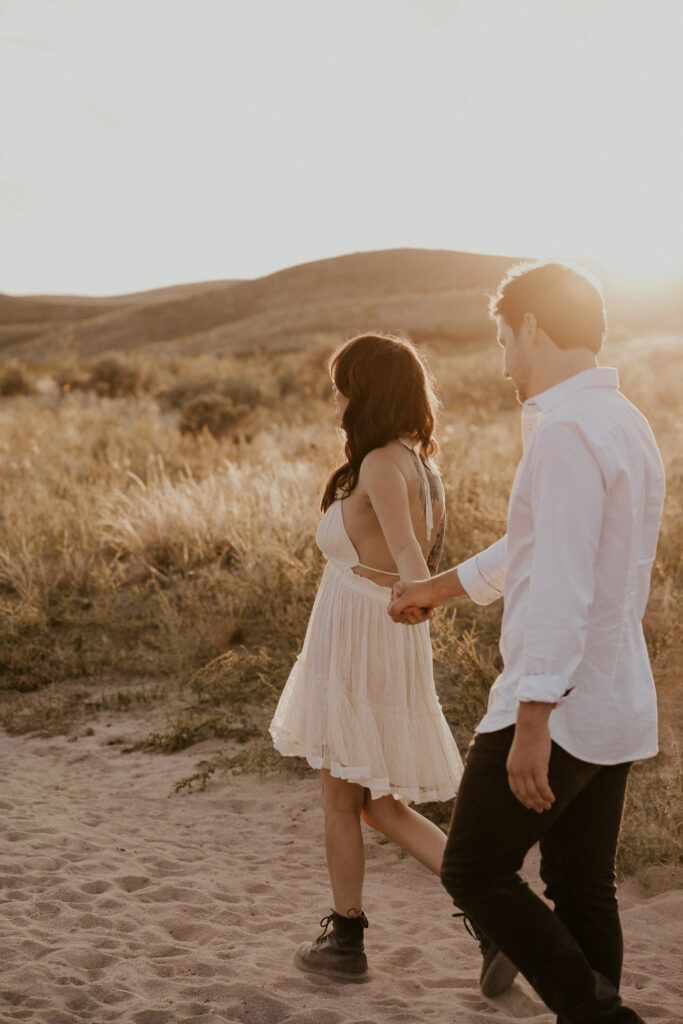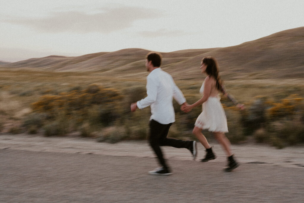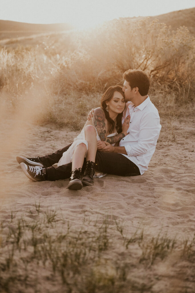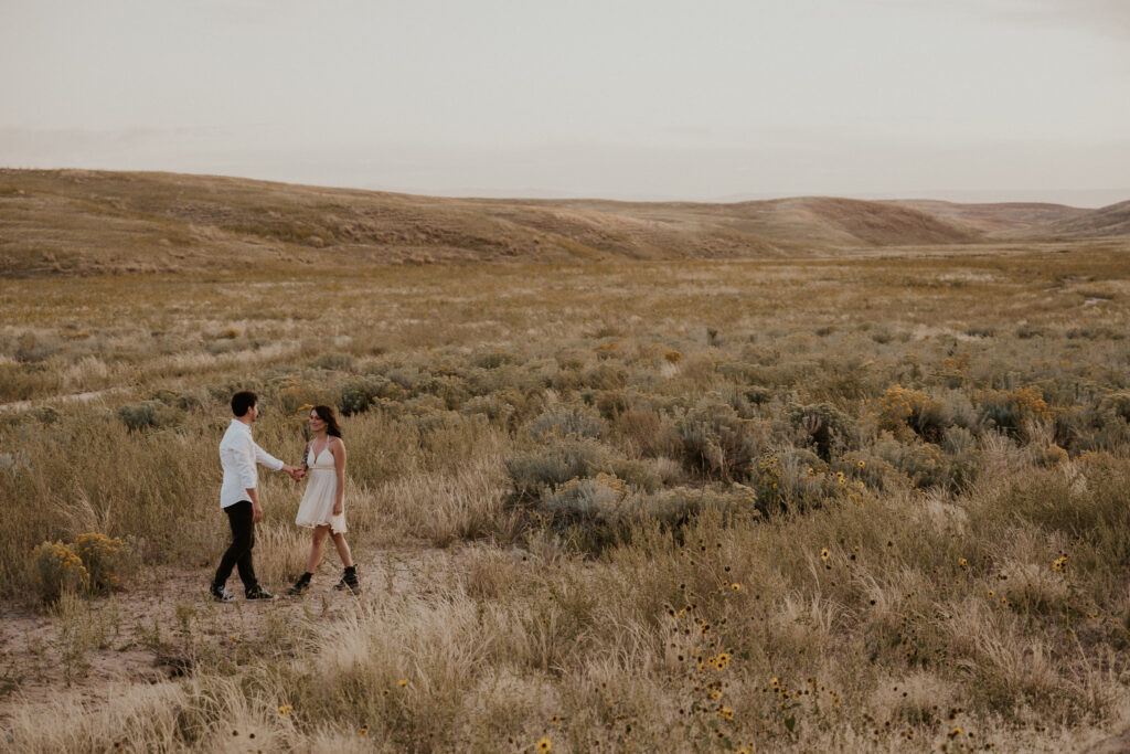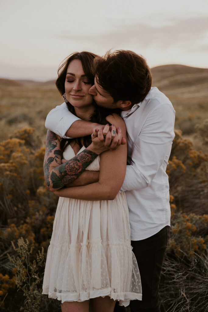 I first shot with Kaileigh and her daughter in the Sawtooth Mountains outside of Stanley, Idaho years ago when I first started photography. As time went on we became friends and I was SO excited to shoot with her + her boyfriend, Bryce. We chose the beautiful desert hills near Eagle, Idaho as a backdrop for their story. I love the Idaho desert because it’s neutral, warm, and sun filled – the taupes, sage, and golden light is some of my favorite to work with, and we shot into blue hour + dark for some fun flash vibes too!